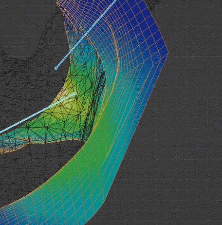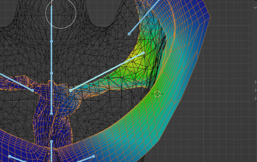 如图,此时模型变型是不均匀的,可以光滑多根骨骼权重使变型更均匀